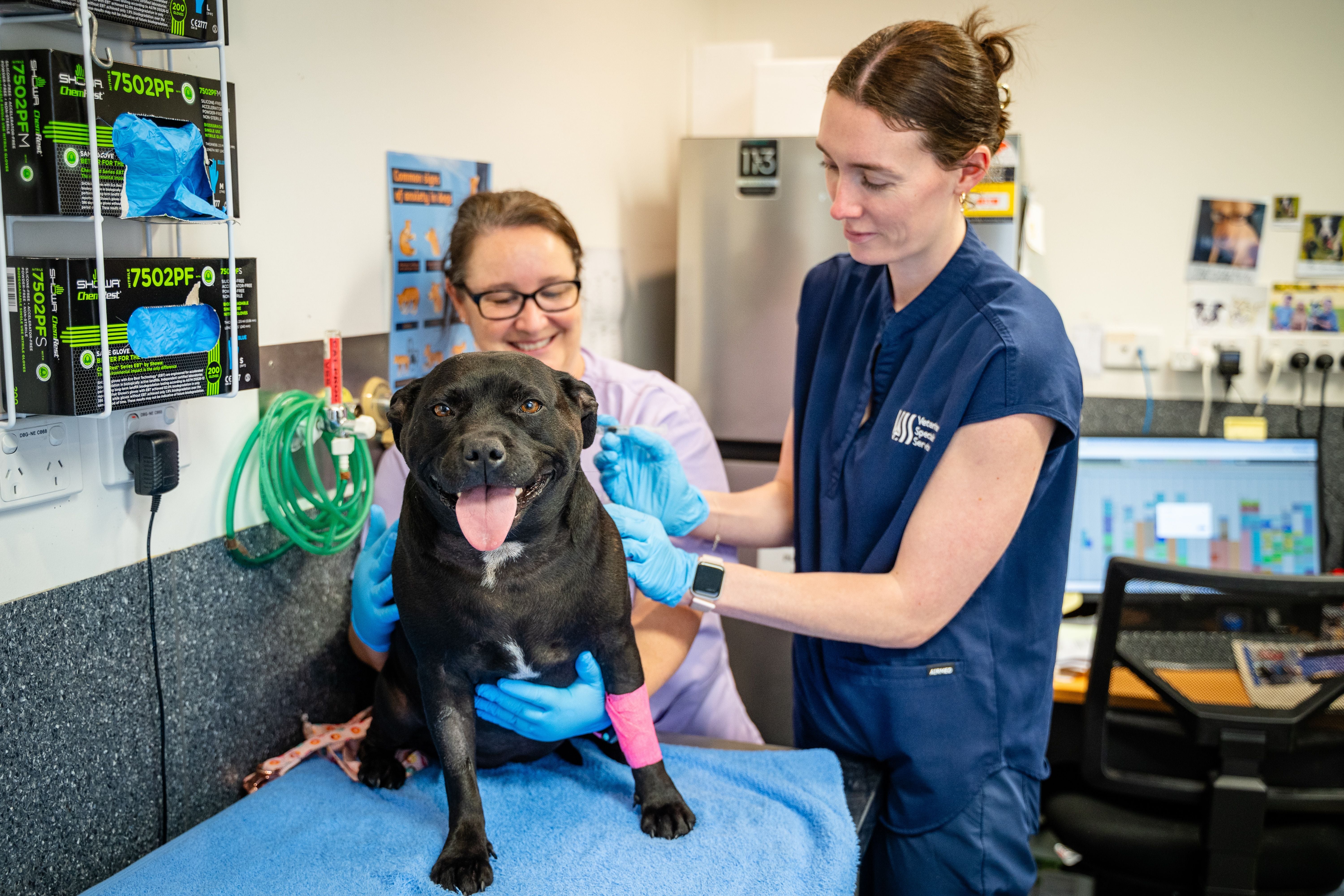 Unlike many specialist centres, VSS Underwood offers true 24-hour in-hospital care from our own veterinary team. Hospitalised patients are monitored continuously by specialist trained nurses and on-call specialists, with emergency support provided by Animal Emergency Services (AES) after hours and on weekends.